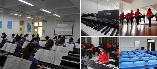 幼儿教育:本专业投资100余万建设高水平实训基地,现建有形体室5间,电钢琴演奏技巧实训室两个,配置多功能数码钢琴共计62架;微格教室:微格教学系统是一个集微格教学、多媒体存储、视频点播、数字化现场直播为一体的数字化网络系统。